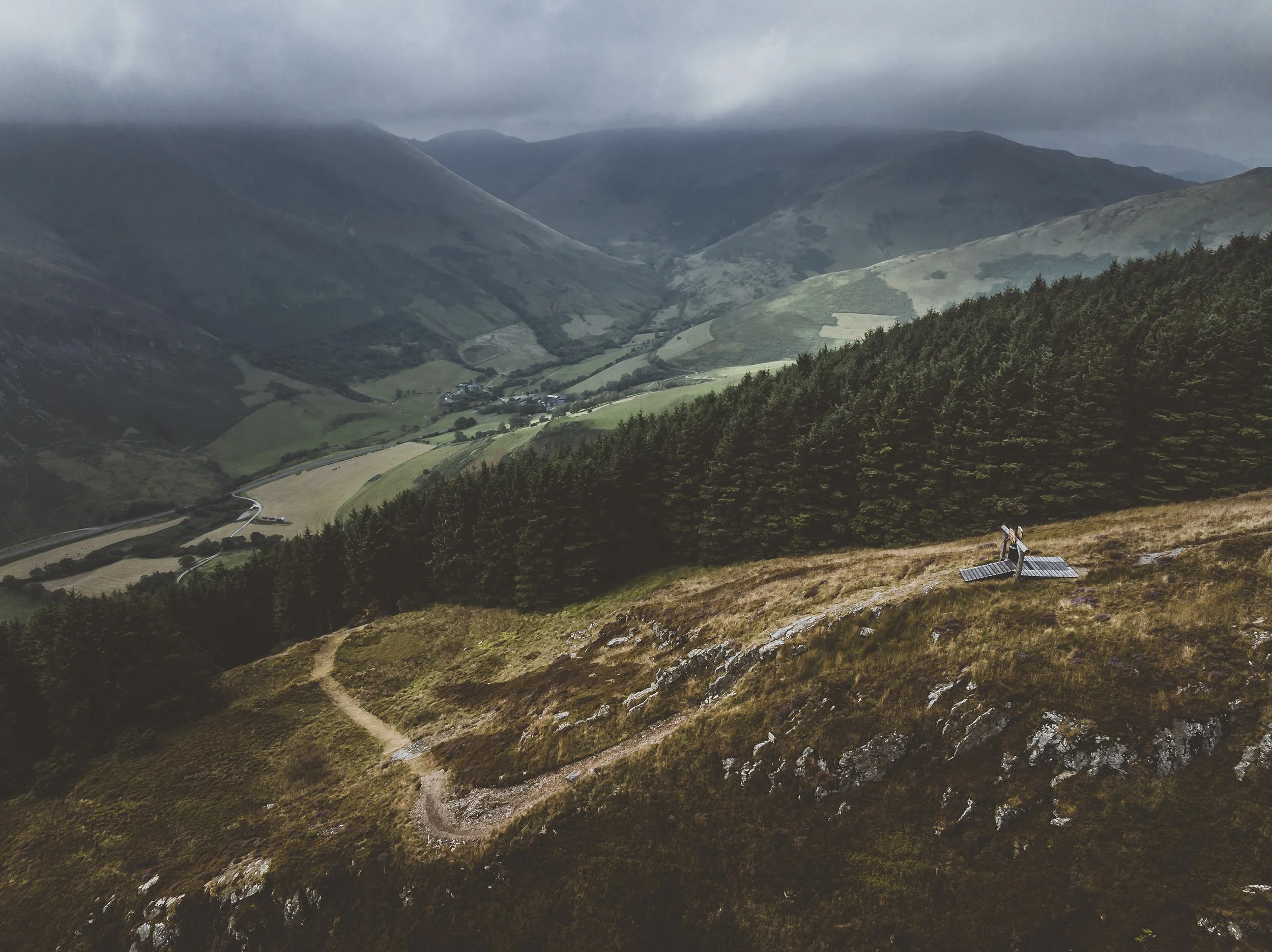 As you head down into the Dyfi valley, you’d be forgiven for missing a faint outline of the 55ft road gap sitting amongst the trees – one of the many monstrosities that make up the course.